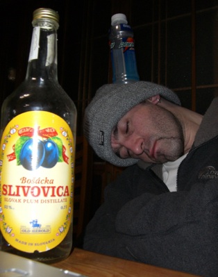 A good days boarding and a few beers turned everybody a bit mad, with various feats of human endeavour taking place. Siobhan had a Wii game so we tried our hardest to break that. Obviously Rob has been overworked all year so he went into the deepest sleep we have ever seen, which was a license to abuse him as far as we were concerned.