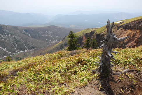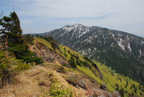 In early May, 2009, I was up at Serenity on my own, and I was feeling a bit intrepid so I decided to attempt a small hike up to the top of the mountain above Sugadaira ski resort. It nearly killed me but I thoroughly enjoyed it. There was a rocky outcrop at the top, and hikers would occasionally appear from out of this rocky bit. Most confusing. I nearly killed myself getting over there, through a big snowdrift down on the left that two women assured me was safe, and I couldn't find any way through!